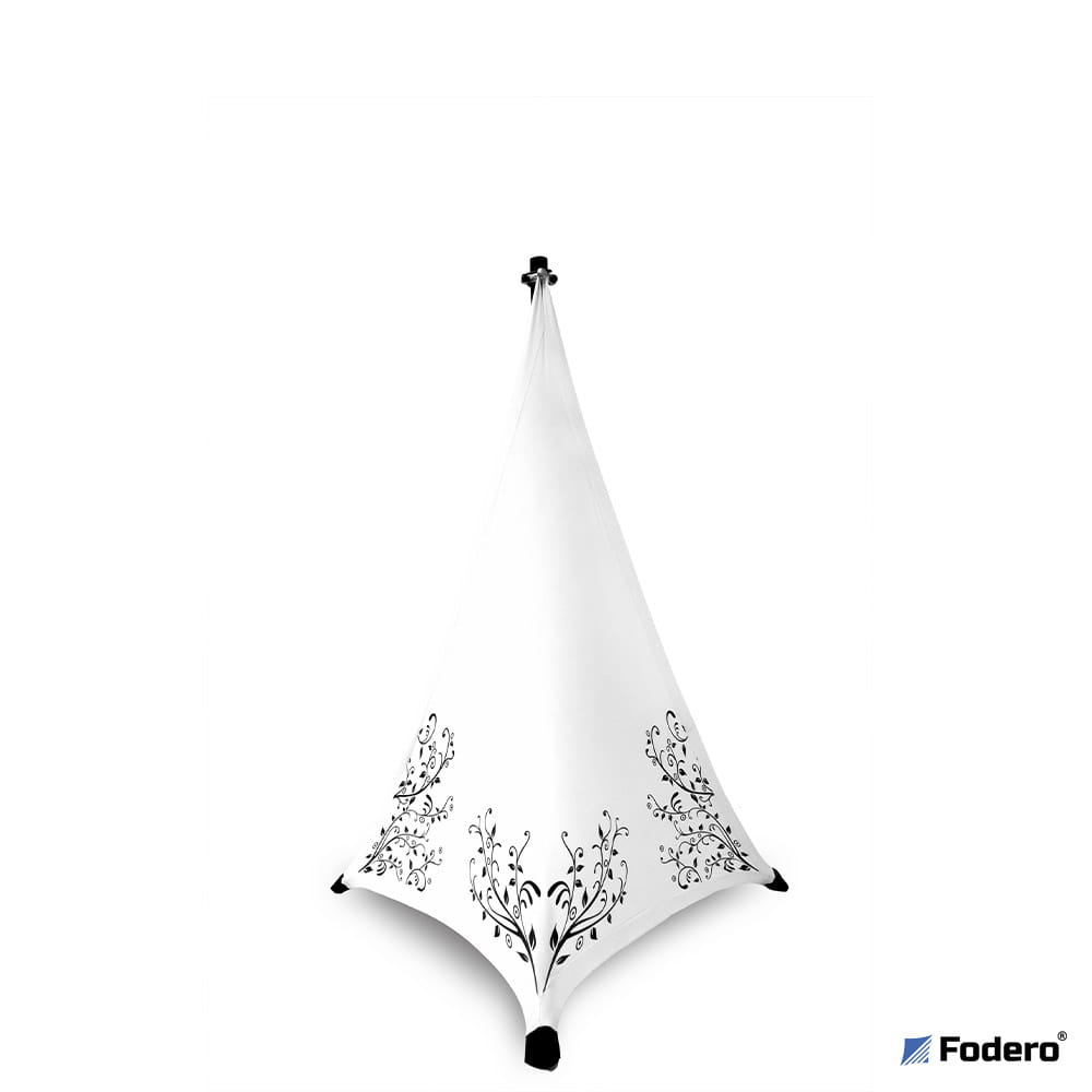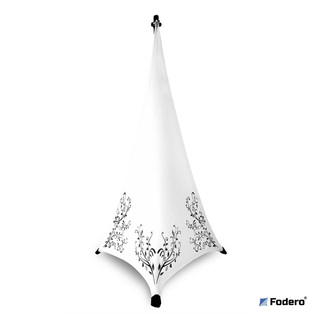 The width of the cover at the bottom is measured from tripod leg to tripod leg. The dimensions are min. 100 cm (39.37in)- max. 130 cm (51.18 in). These are the ranges we recommend at which the cover looks the most beautiful. The covers can be gently stretched to about 90 cm (35.4 in) or wider than 130 cm (51.18 in), but then there is a risk of deformation of the material and its deformation or tearing.
